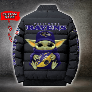 NFL Baltimore Ravens Custom Name Baby Yoda Down Jacket Puffer Jacket PJ038