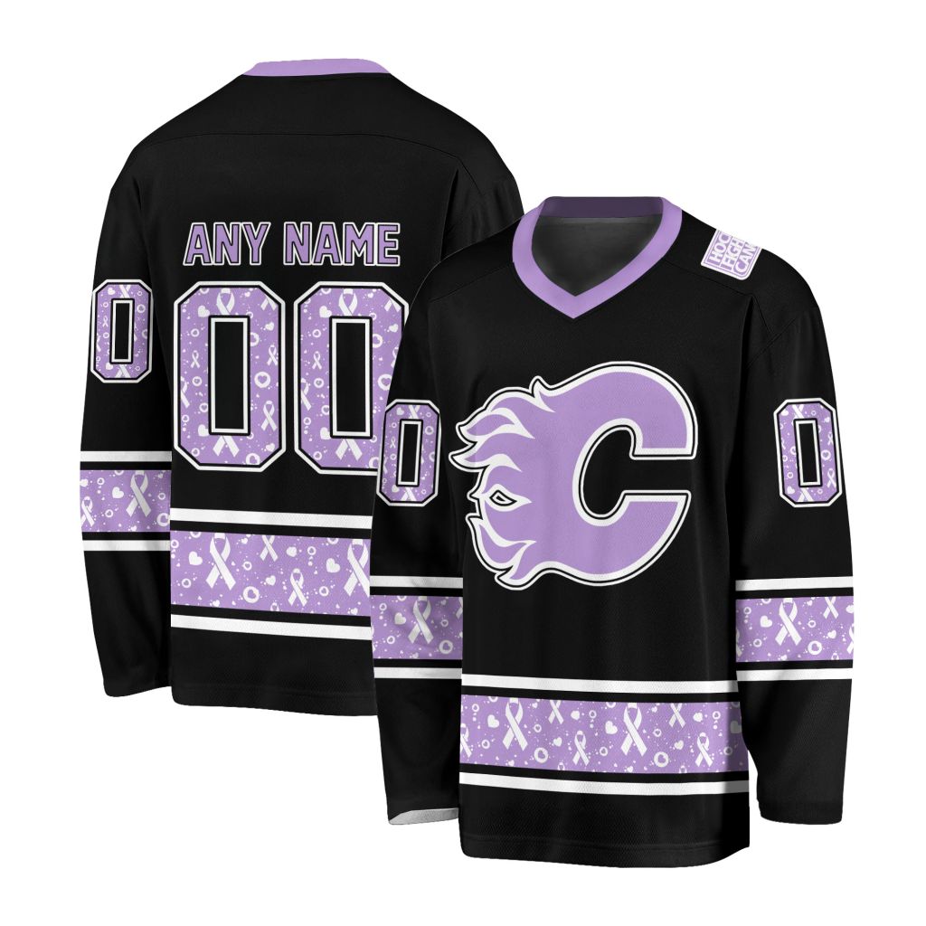 NHL Calgary Flames Special Black Hockey Fight Cancer V-neck Hockey Jersey FHJ301