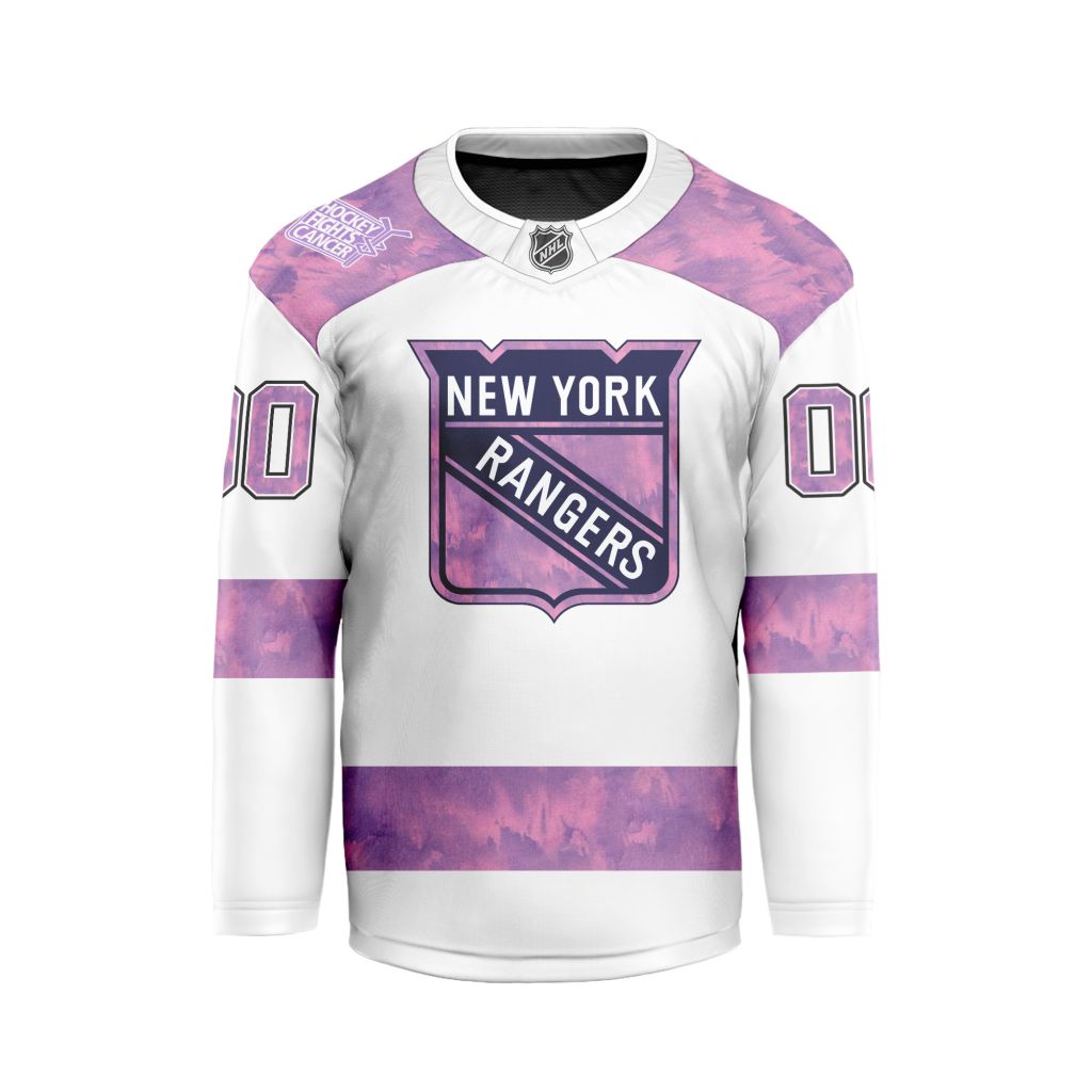 NHL New York Rangers Personalized Hockey Fights Cancer Design Hockey Jersey Collar Logo