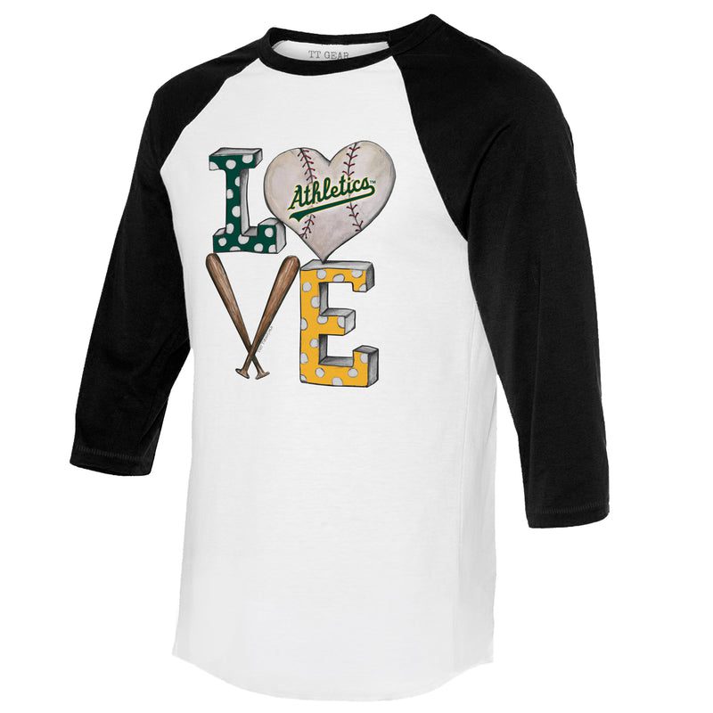 Oakland Athletics Baseball LOVE 3/4 Black Sleeve Raglan Shirt