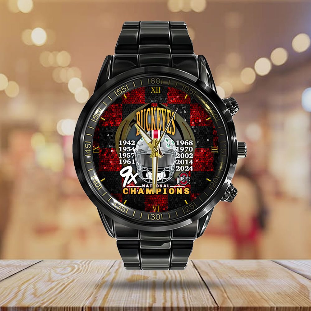 Ohio State Buckeyes Football Black Stainless Steel Watch NCT1035