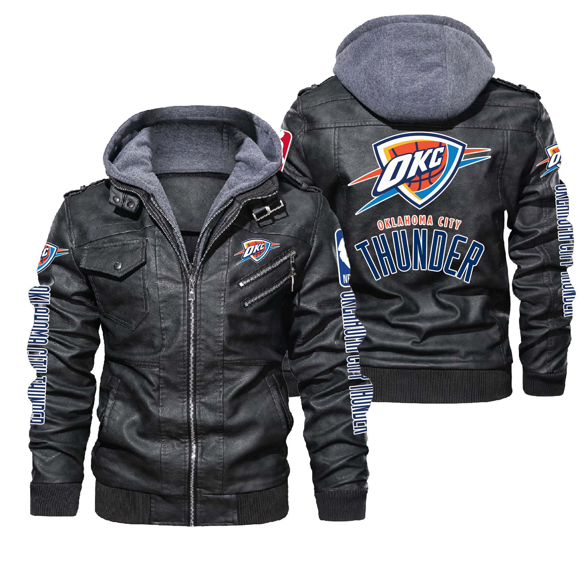 Oklahoma City Thunder Black Brown Leather Jacket LIZ127