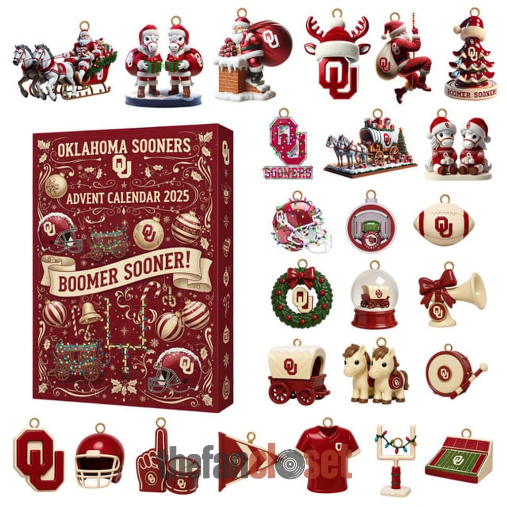 Oklahoma Sooners Boomer Sooner Advent Calendar Acrylic Hanging Decor Box 2025