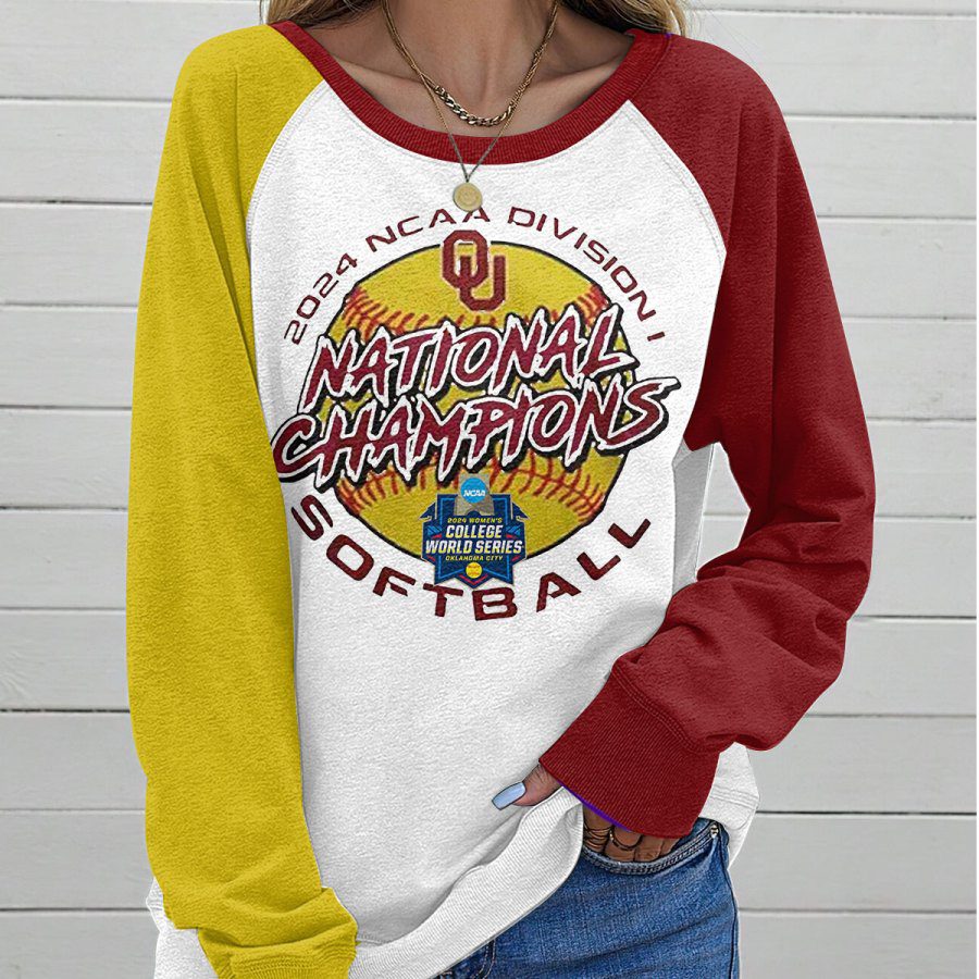Oklahoma Sooners Women Softball Round Neck Raglan Sleeve Sweatshirt GRS1007