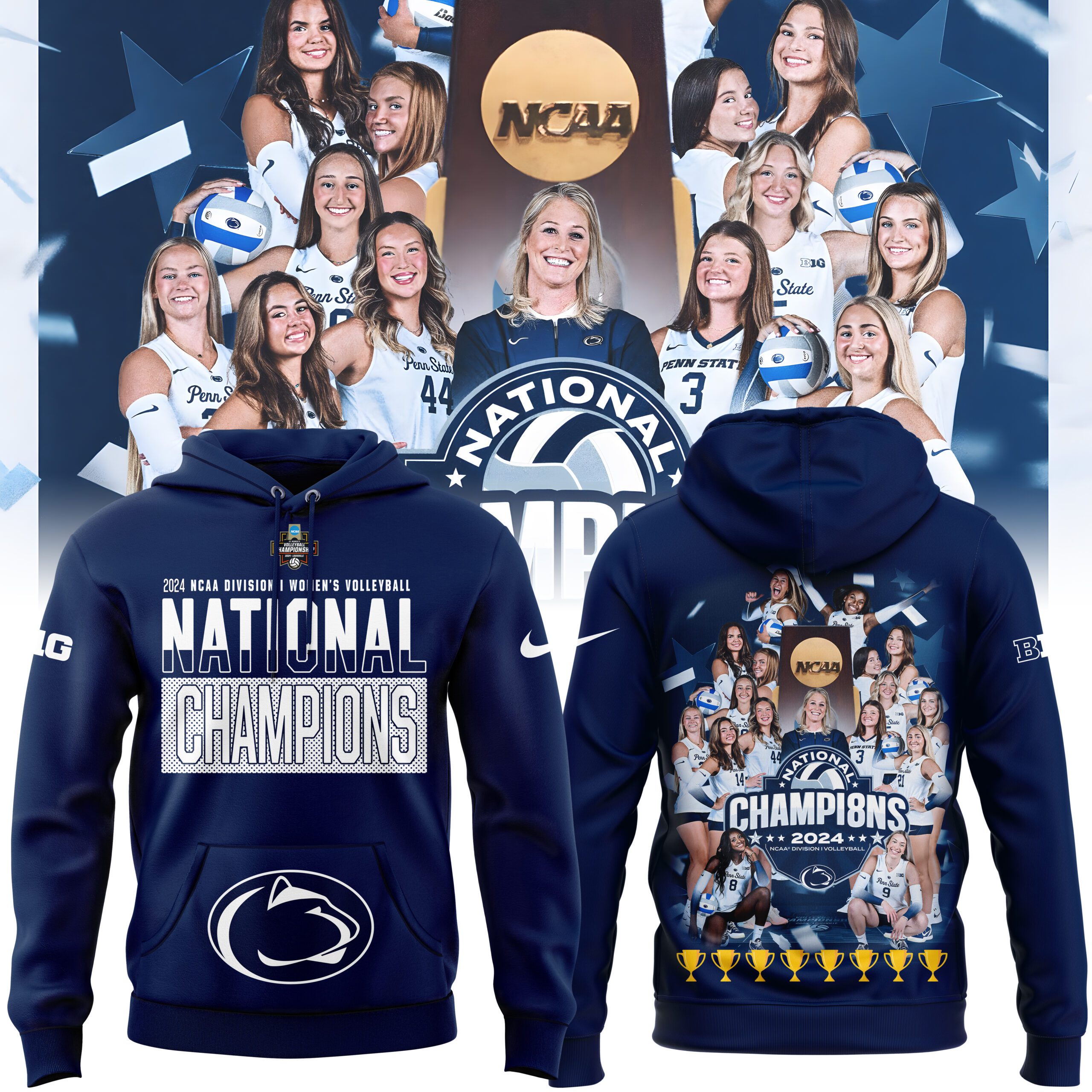 Penn State Women’s Volleyball Eight Time National Championships Hoodie BHD6084