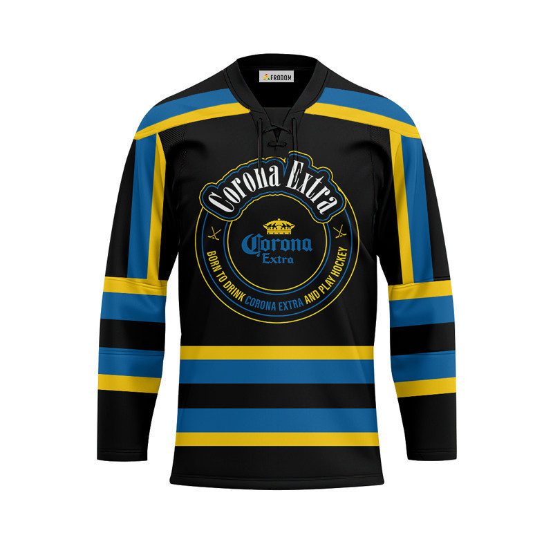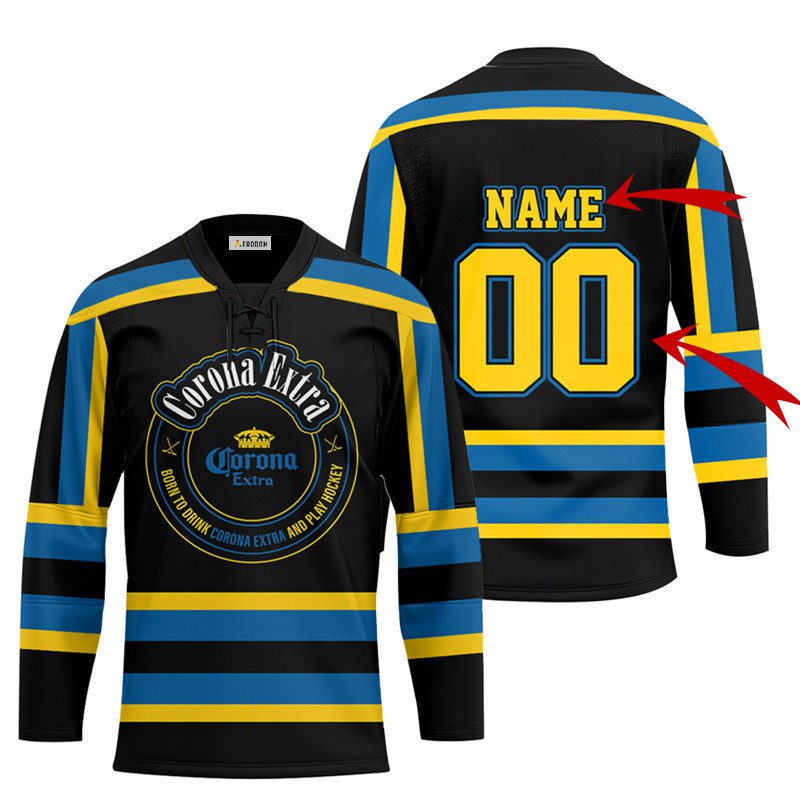 Personalized Black Born To Drink Corona Extra and Play Lace Hockey Jersey