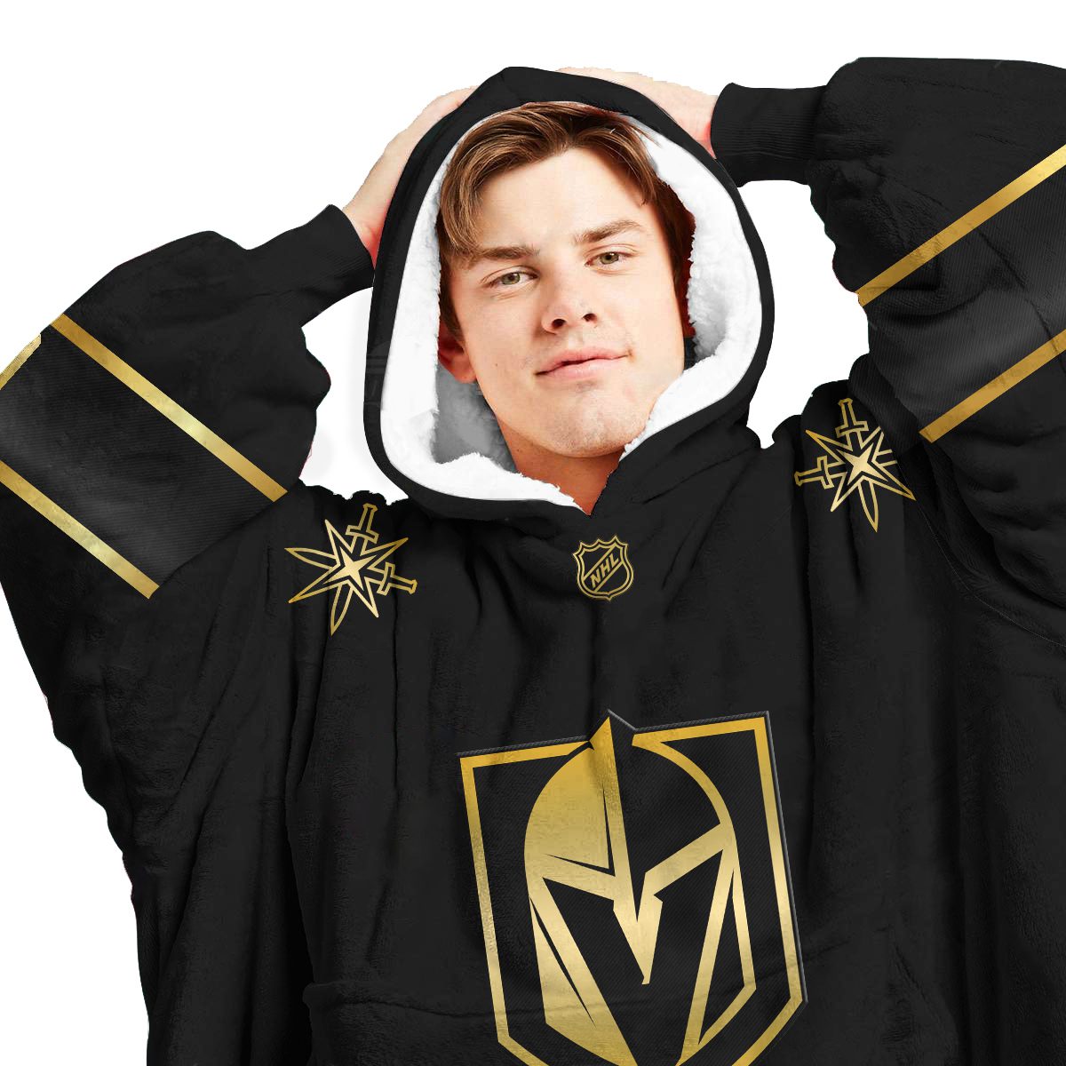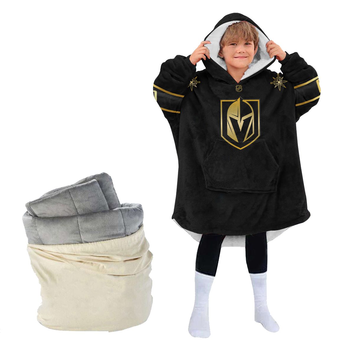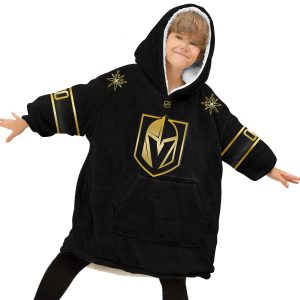 Personalized Black Gold NHL Vegas Golden Knights Jersey Oodie Blanket Hoodie Wearable Blanket