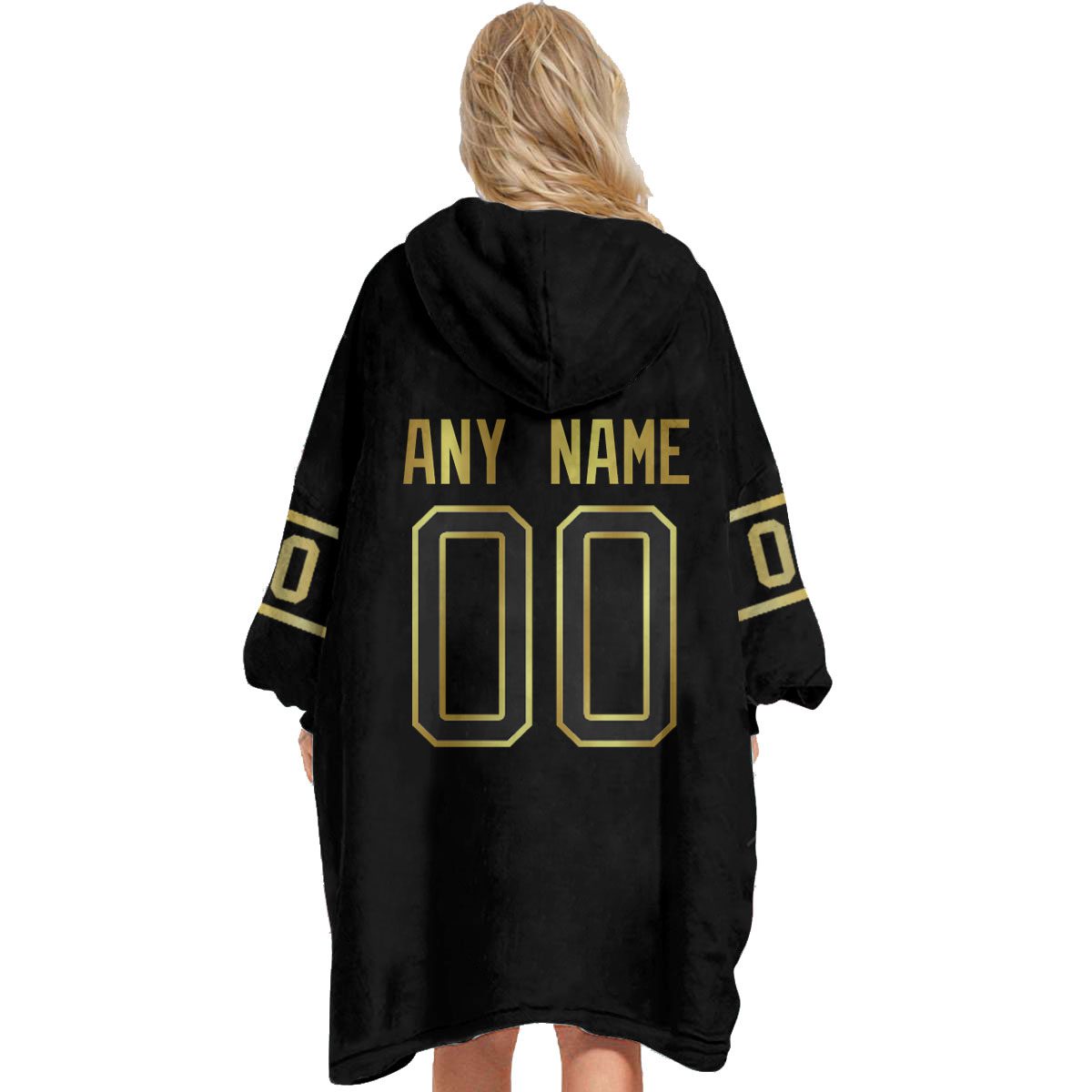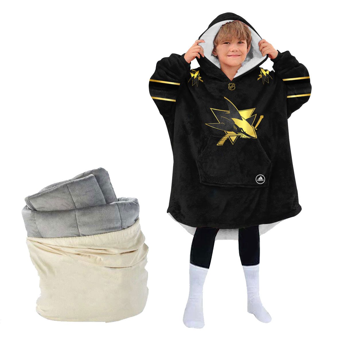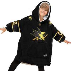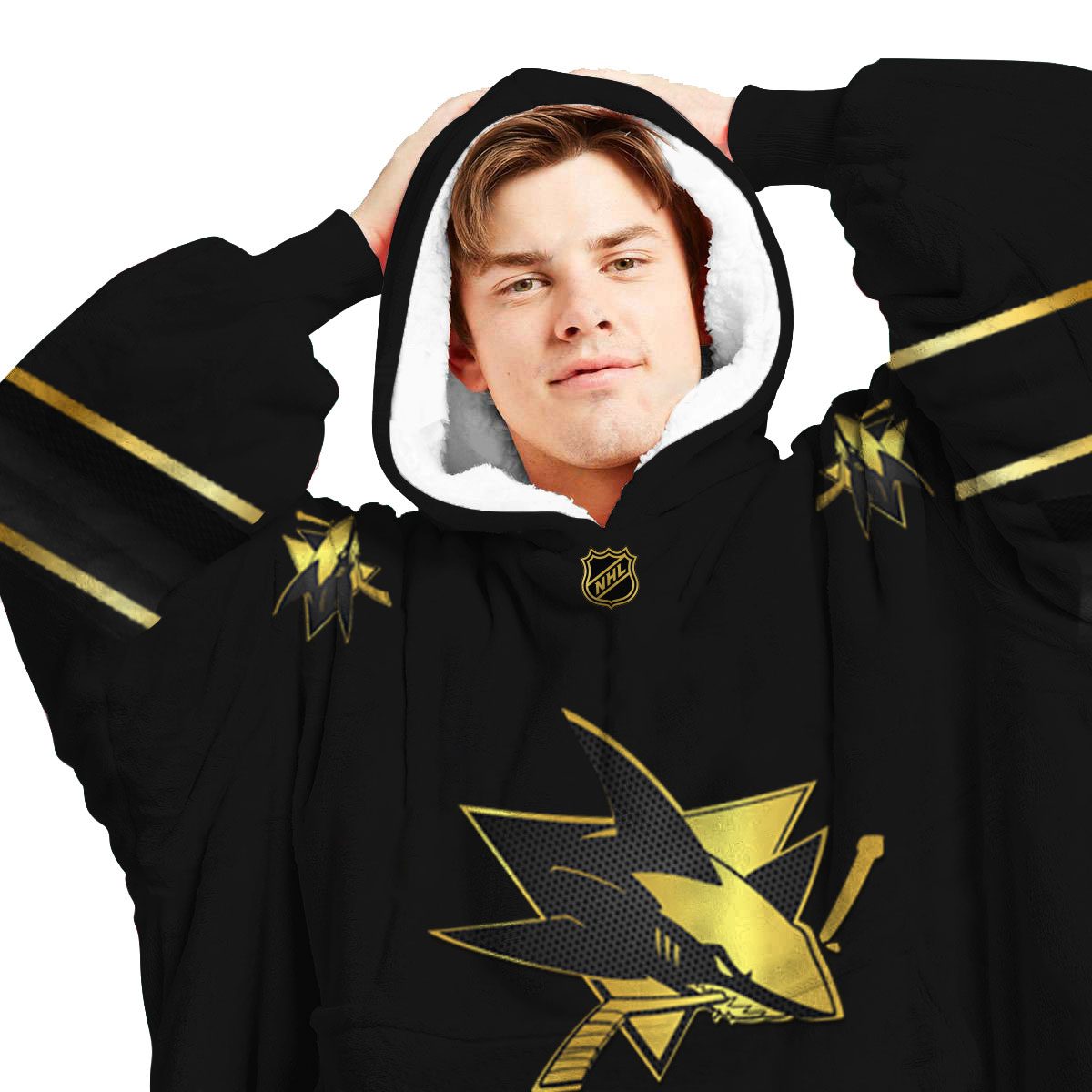 Personalized Black Golden NHL San Jose Sharks Oodie Blanket Hoodie Wearable Blanket