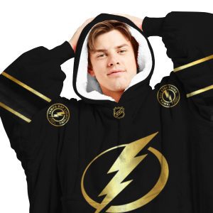 Personalized Black Golden NHL Tampa Bay Lightning Oodie Blanket Hoodie Wearable Blanket