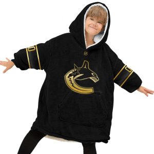 Personalized Black Golden NHL Vancouver Canucks Oodie Blanket Hoodie Wearable Blanket