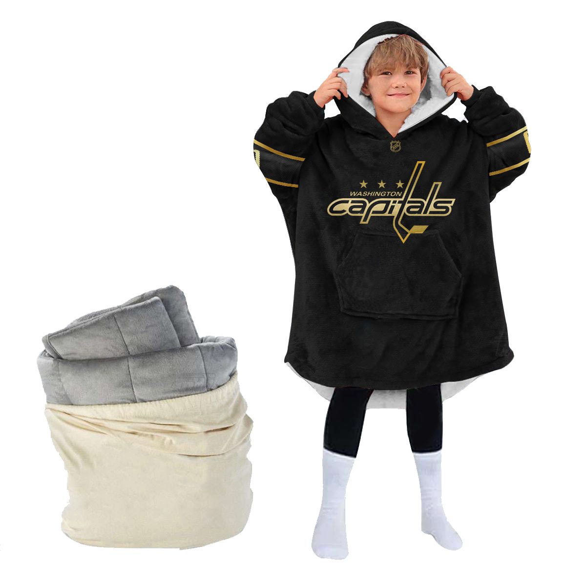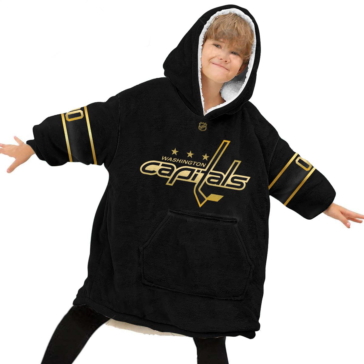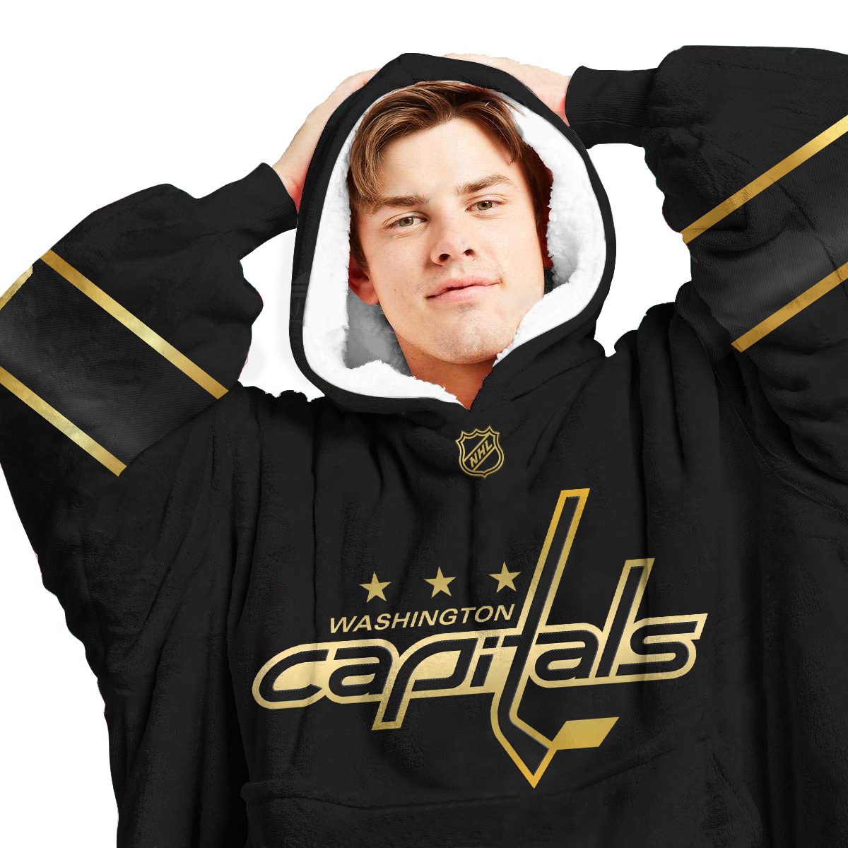 Personalized Black Golden NHL Washington Capitals Jersey Oodie Blanket Hoodie Wearable Blanket