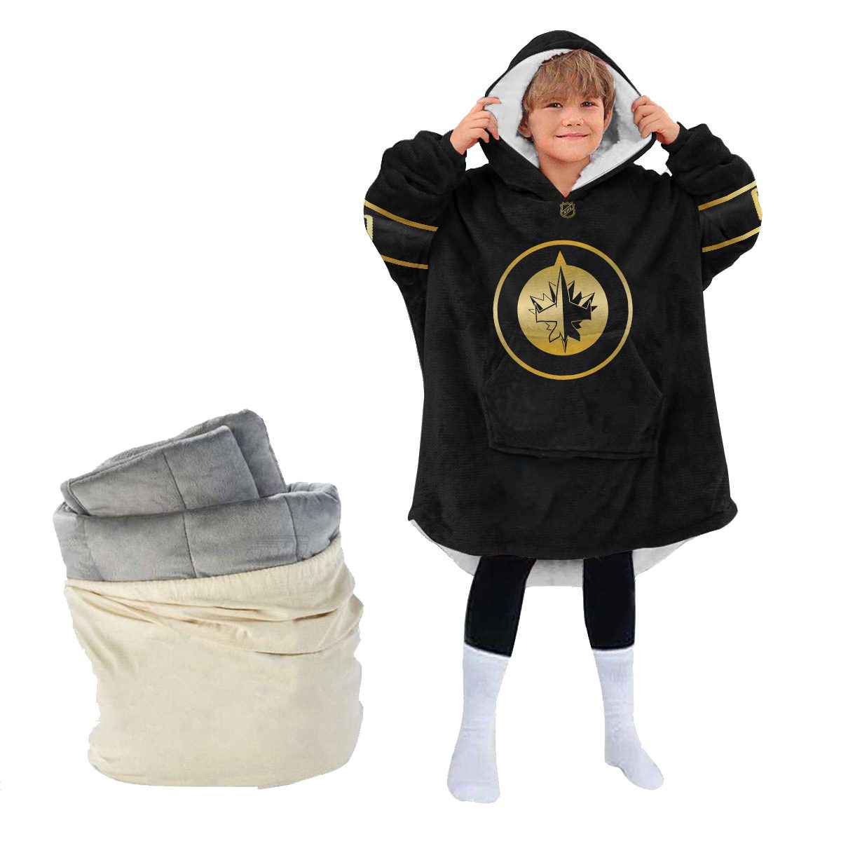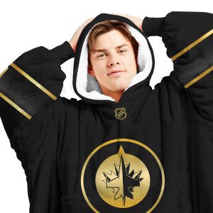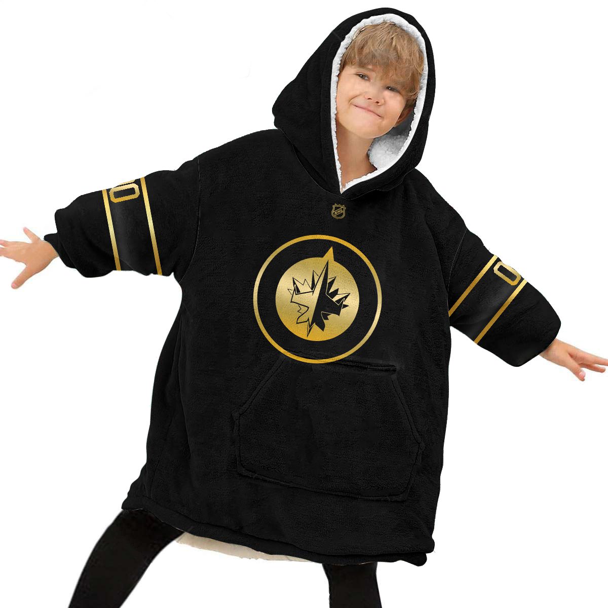 Personalized Black Golden NHL Winnipeg Jets Oodie Blanket Hoodie Wearable Blanket