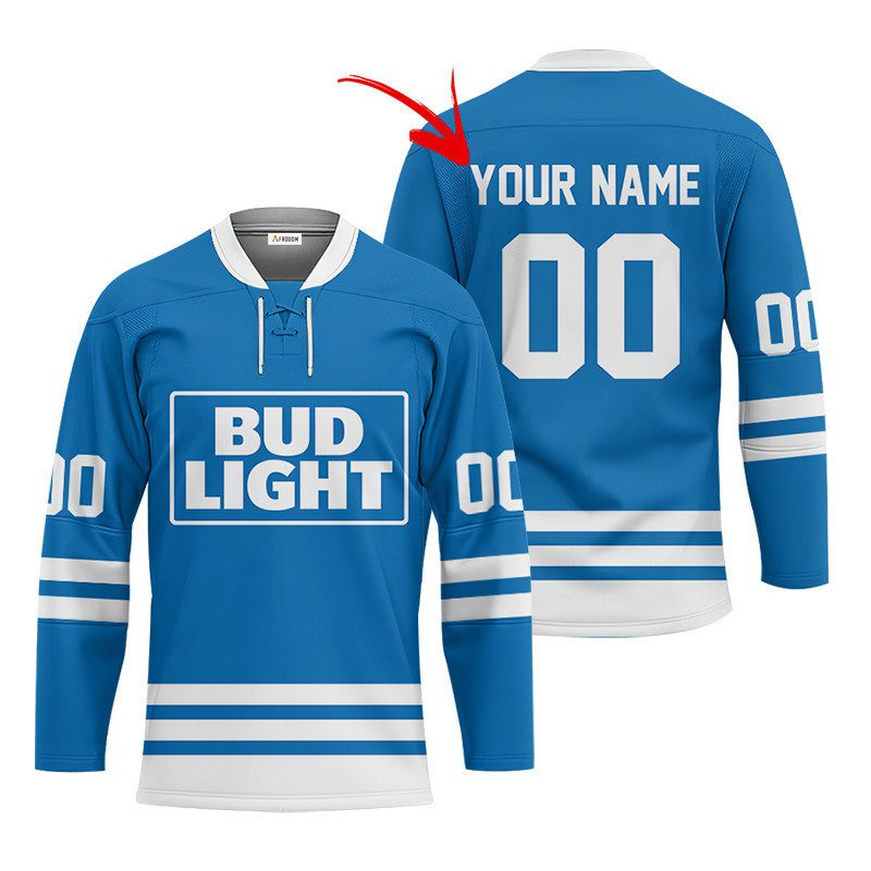Personalized Bud Light Blue Retro Lace Hockey Jersey
