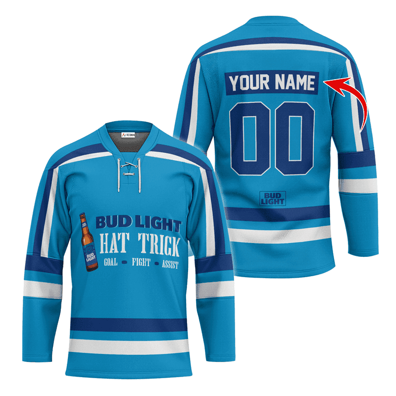 Personalized Bud Light Hat Trick Lace Hockey Jersey
