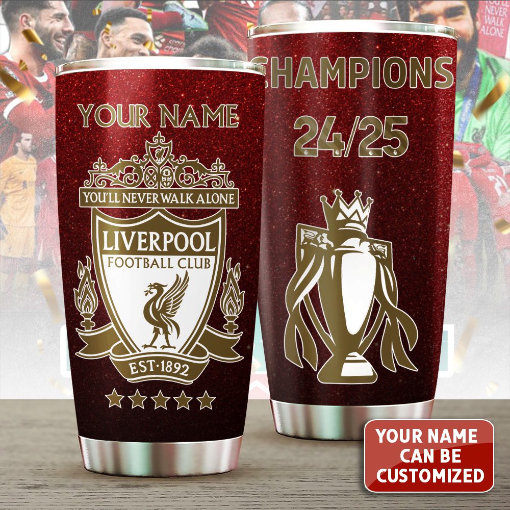 Personalized Liverpool FC Champion 2024/25 Premier League Tumbler Cup GCL1343