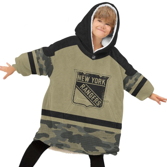 Personalized New York Rangers Military Jersey Camo Oodie Blanket Hoodie Wearable Blanket