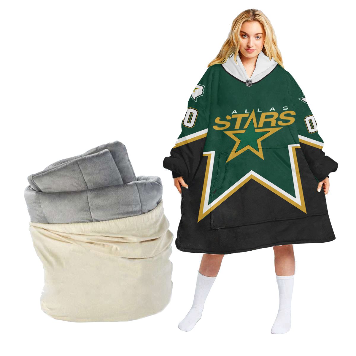 Personalized NHL Dallas Stars Retro Reverse Oodie Blanket Hoodie Wearable Blanket