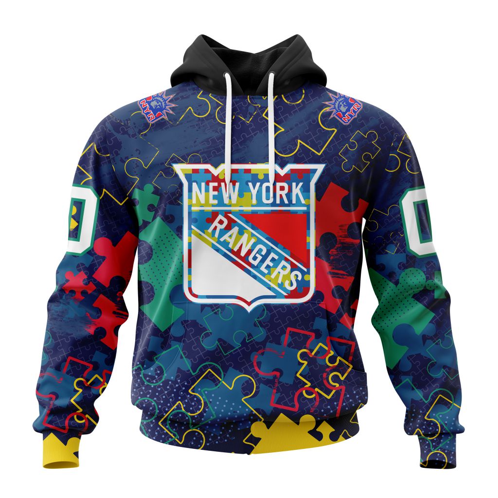 Personalized NHL New York Rangers Specialized Fearless Against Autism Unisex Pullover Hoodie