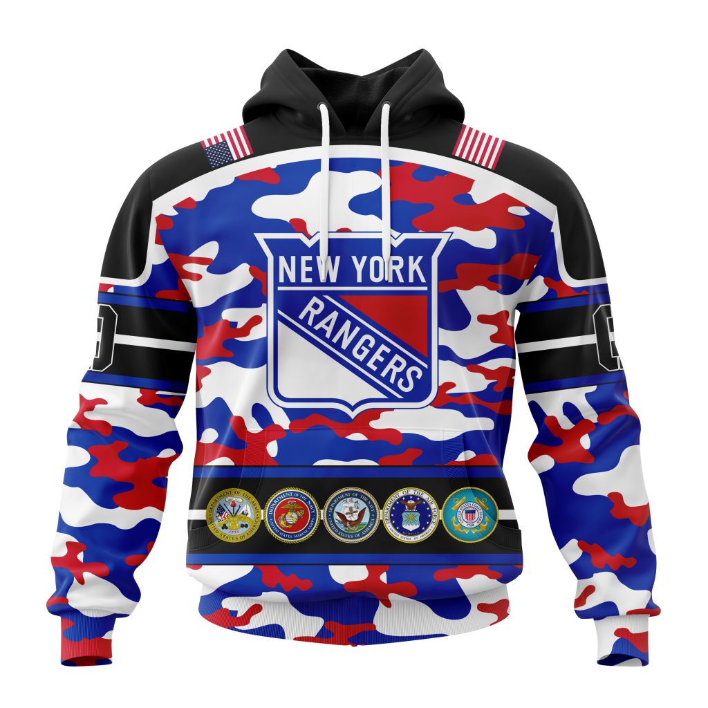 Personalized NHL New York Rangers With Camo Team Color And Military Force Logo Unisex Pullover Hoodie
