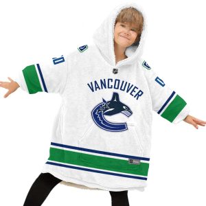 Personalized NHL Retro Reverse Vancouver Canucks Oodie Blanket Hoodie Wearable Blanket