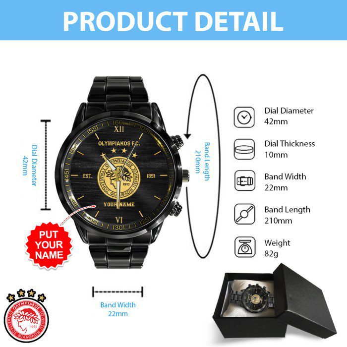 Personalized Olympiakos F.C. Black Stainless Steel Watch GSW1064