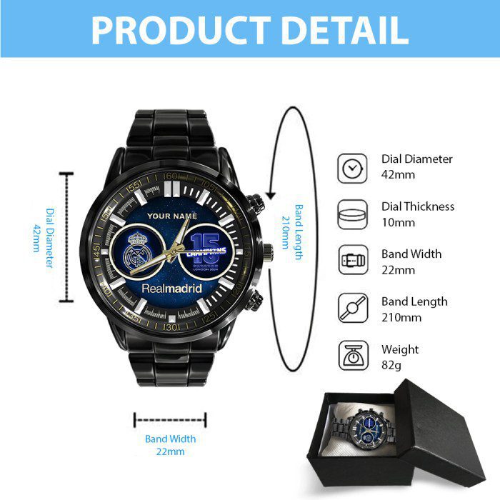 Personalized Real Madrid CF Black Stainless Steel Watch GSW1036