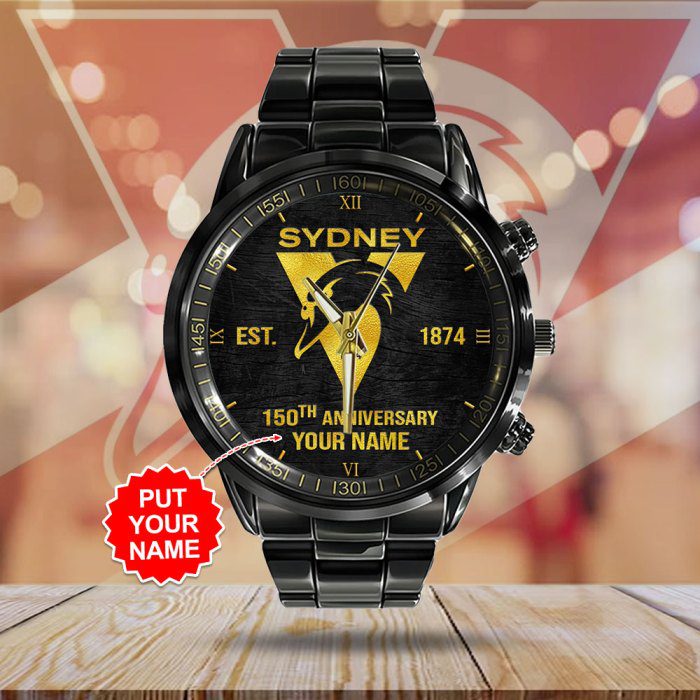 Personalized Sydney Swans Black Stainless Steel Watch GSW1185