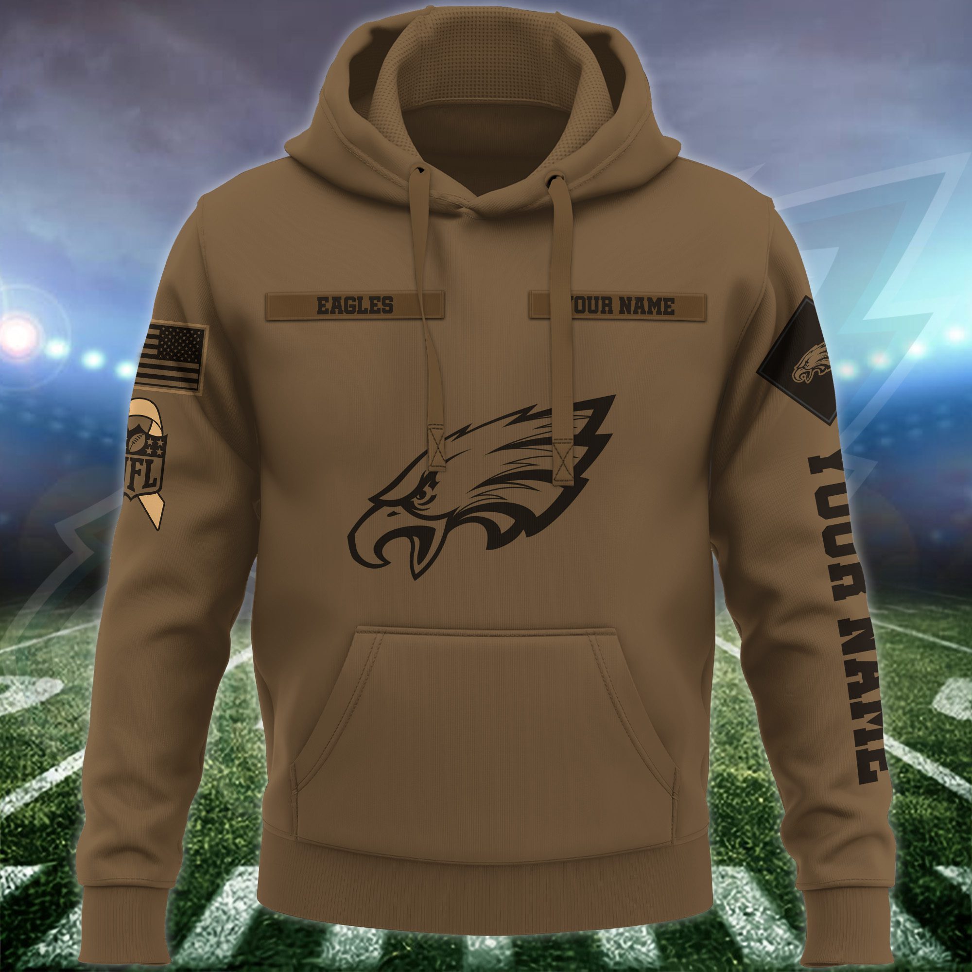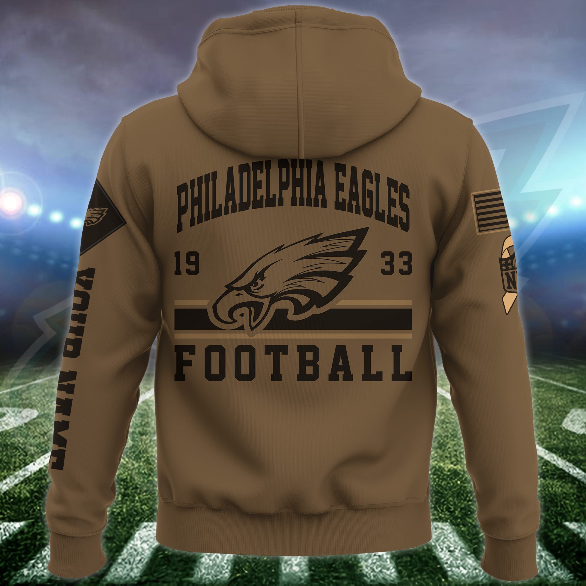 Philadelphia Eagles NFL Brown Salute To Service 2023 Veteran 3D Hoodie Custom Your Name HSL1154