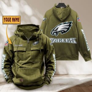 Philadelphia Eagles NFL Personalized Multi Pocket Quarter Zip Vintage Hoodie WVH1060