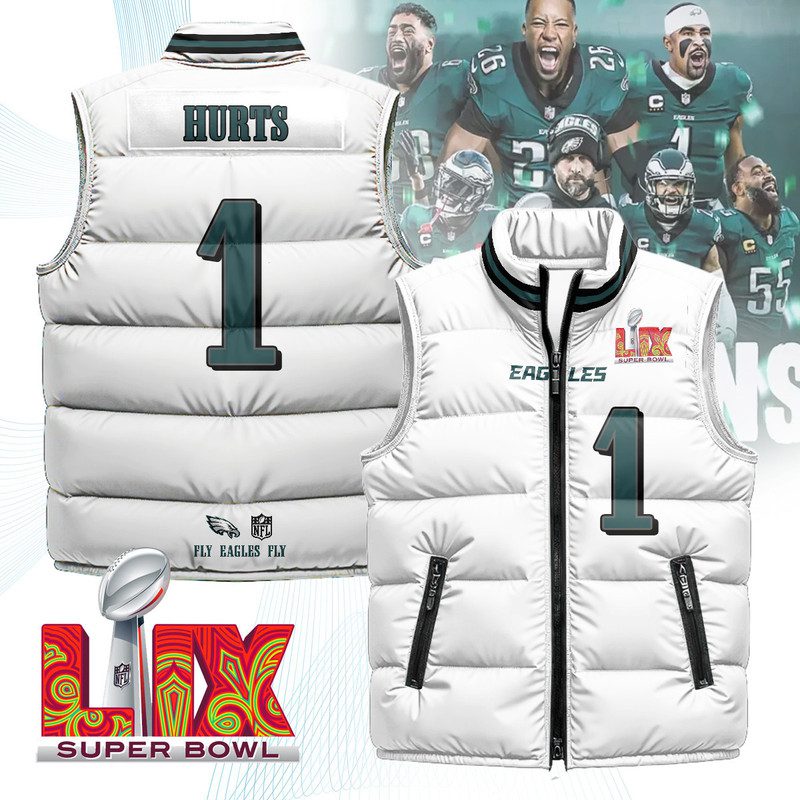 Philadelphia Eagles Unisex Puffer Vest Sleeveless Down Jacket- White / Jalen Hurts – 1