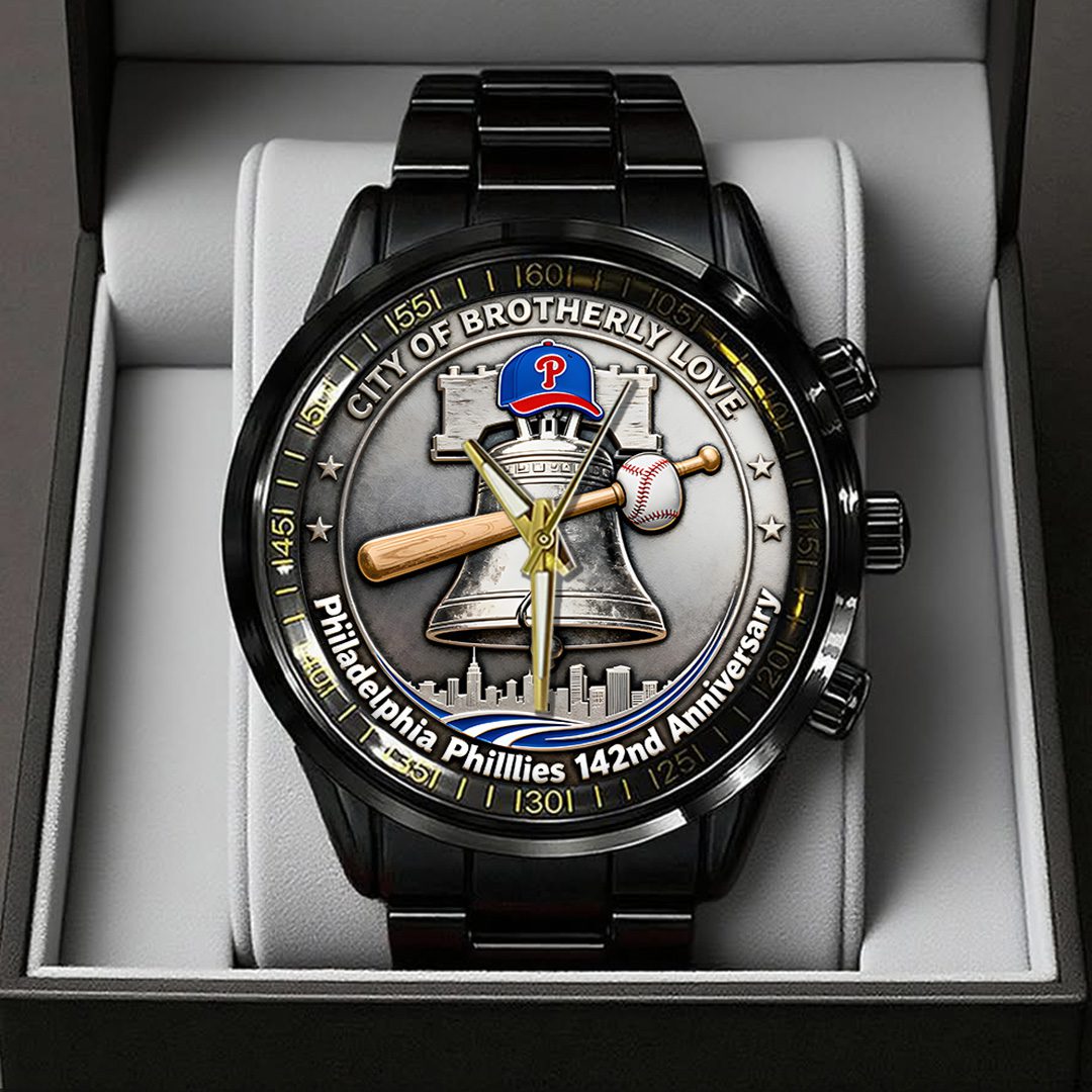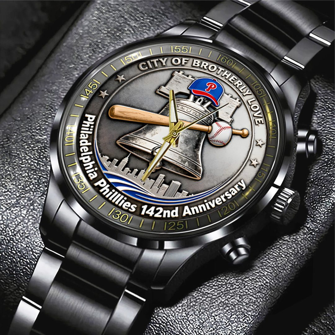 Philadelphia Phillies 142nd Anniversary Black Stainless Steel Watch GIFT1005