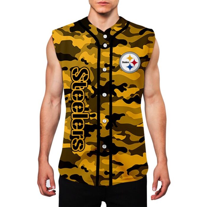 Pittsburgh Steelers Camo Sleeveless Baseball Jersey Tank Top Custom Name BBTJ1091