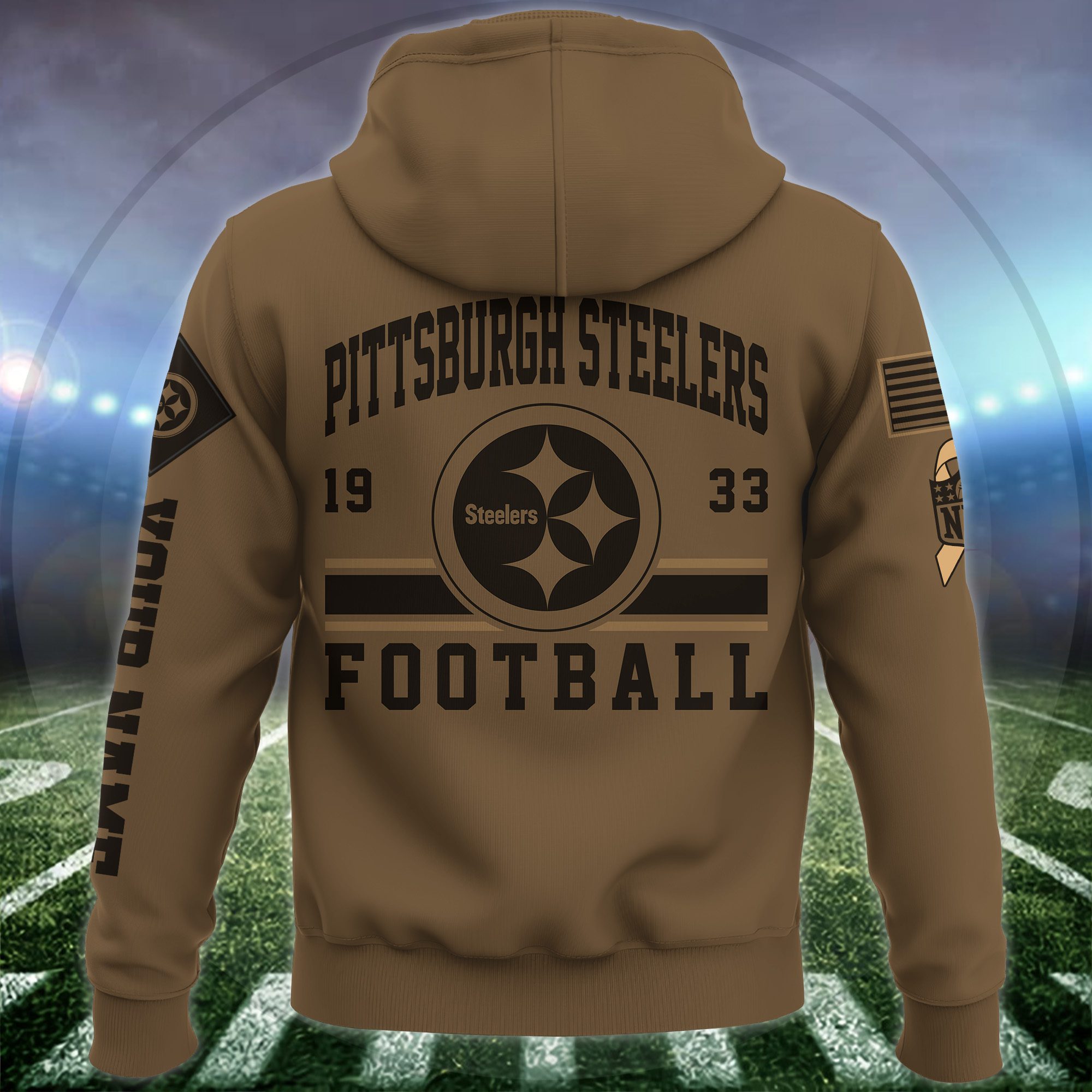 Pittsburgh Steelers NFL Brown Salute To Service 2023 Veteran 3D Hoodie Custom Your Name HSL1155