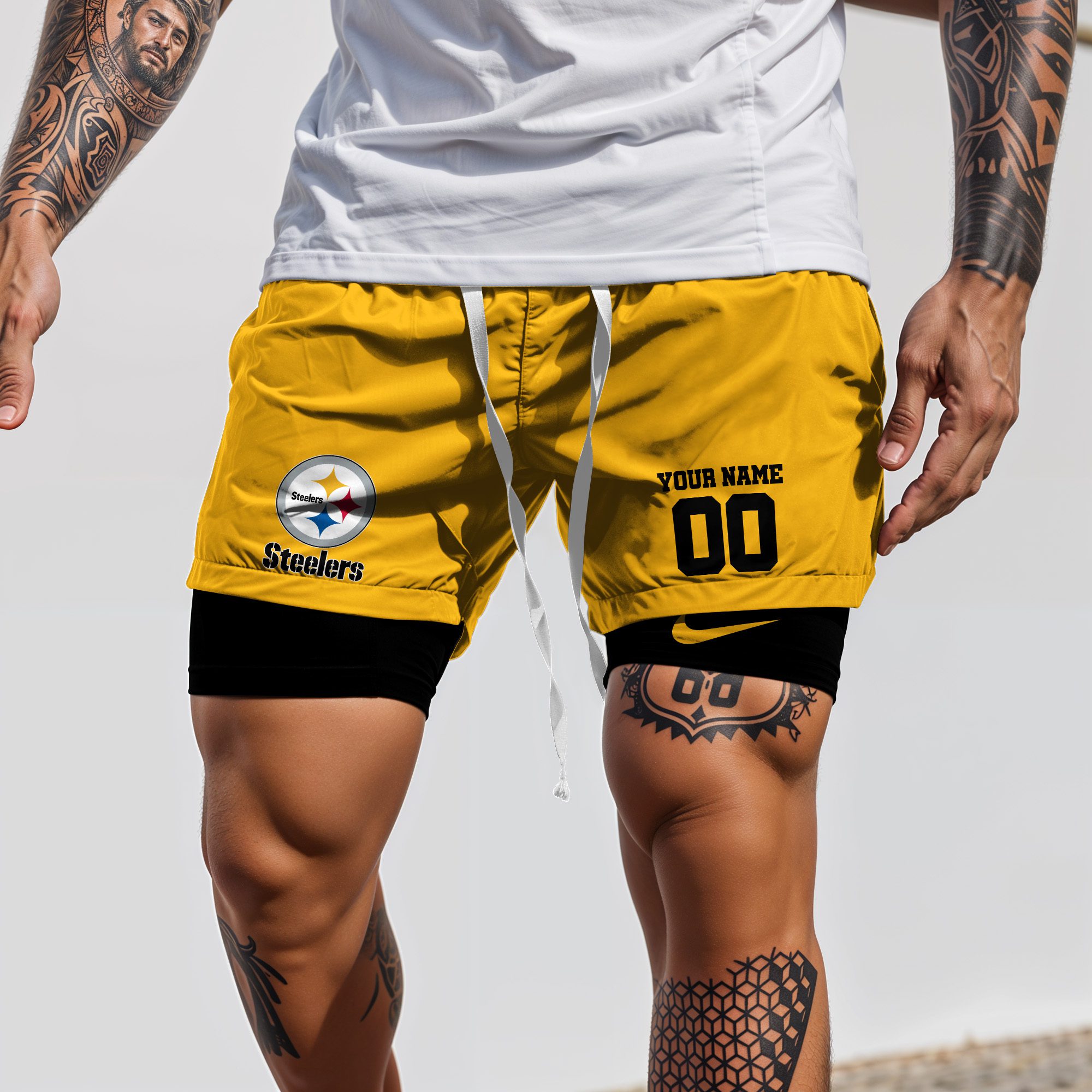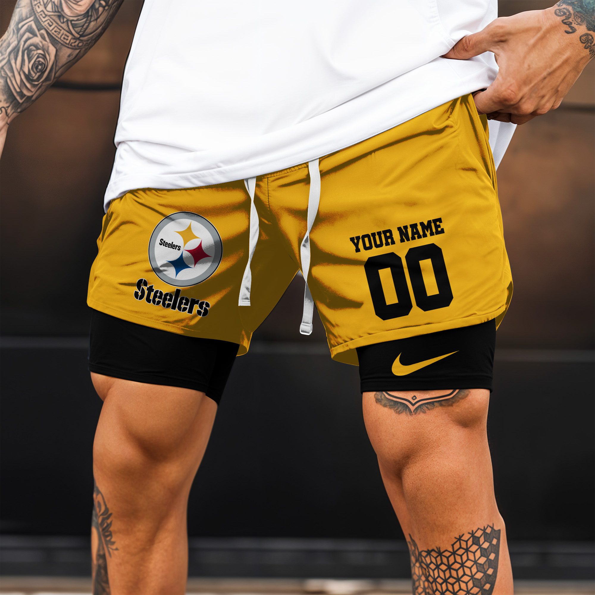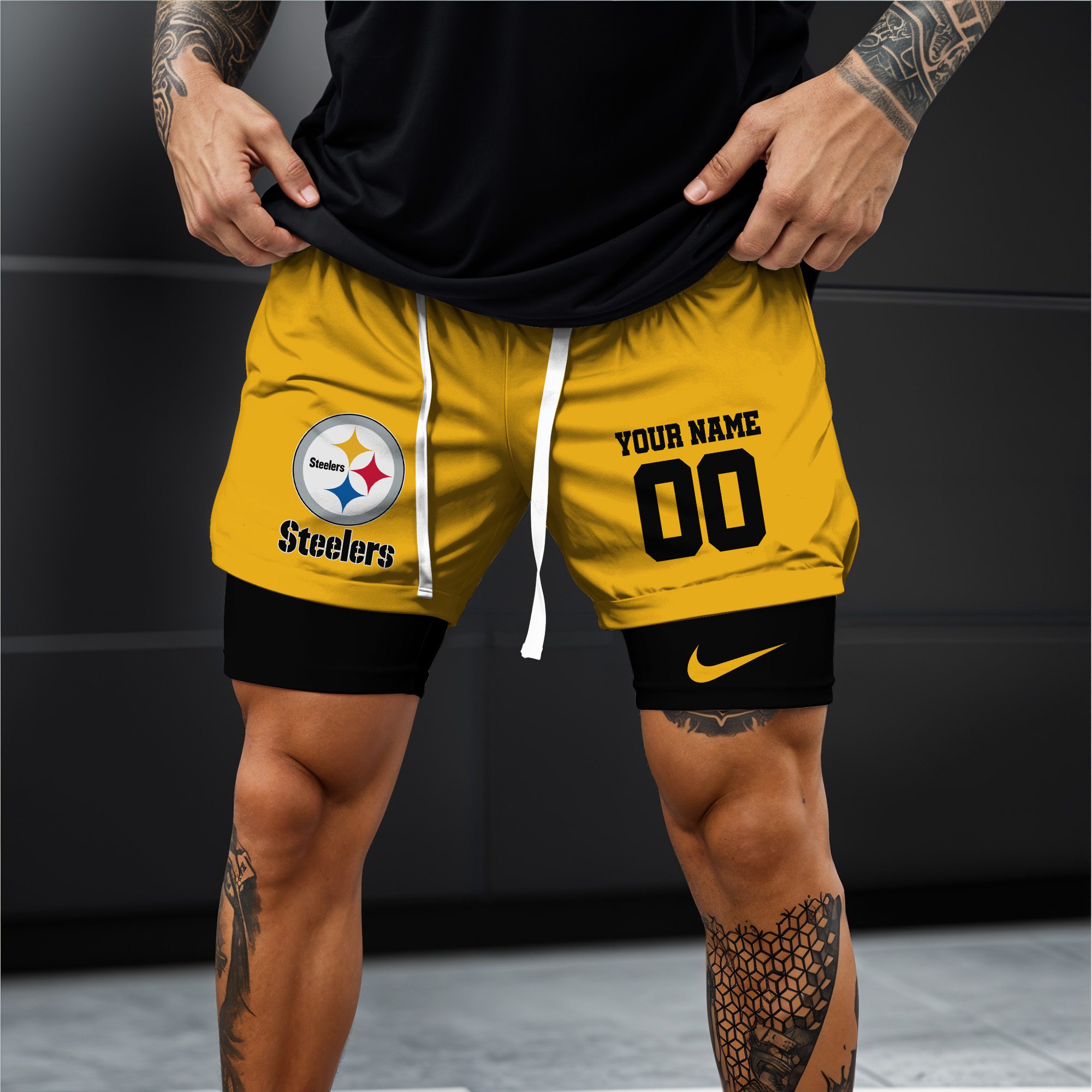 Pittsburgh Steelers NFL Double Layer Shorts Custom Your Name And Number WDS1058