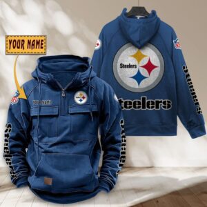 Pittsburgh Steelers NFL Personalized Multi Pocket Quarter Zip Vintage Hoodie WVH1059