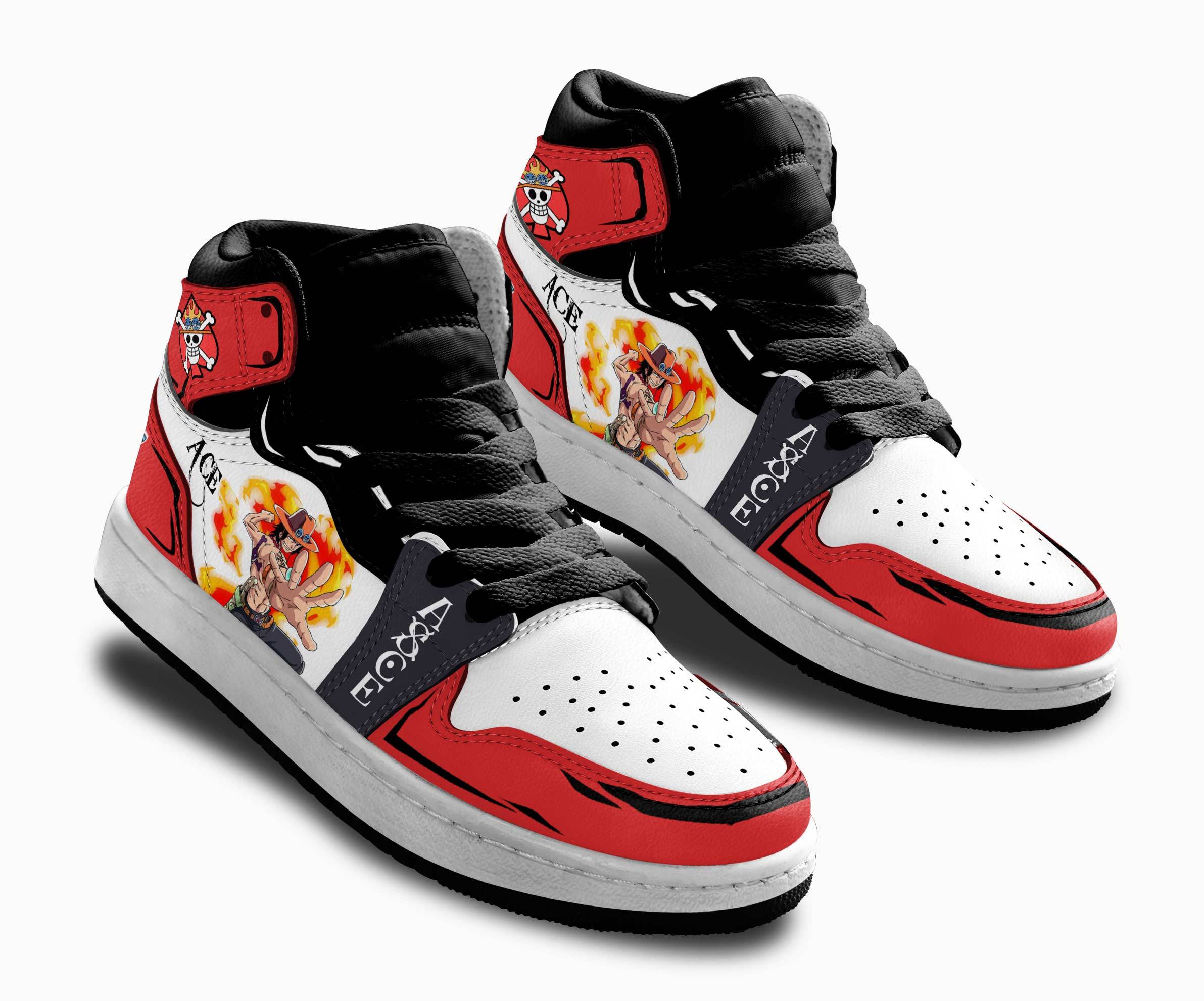 Portgas D Ace Kids Sneakers Custom Anime One Piece Kids Jordan 1 Shoes
