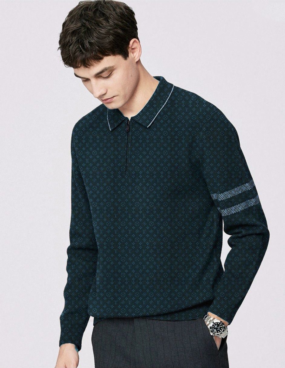 Premium 2024 Luxury LV Zip Polo Sweatshirt (Blue) Collar Sweatshirt CPLS1001