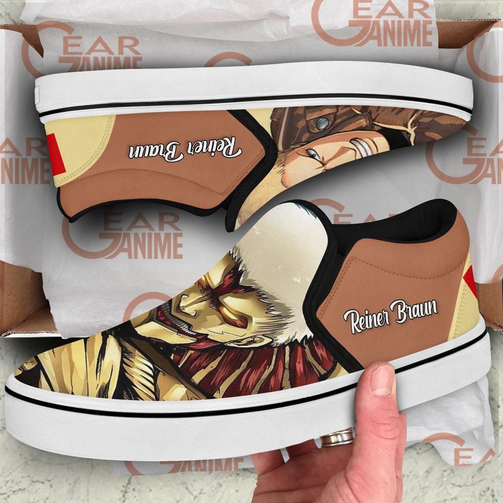 Reiner Braun Armored Titan Slip On Shoes Custom Anime Attack On Tian Shoes