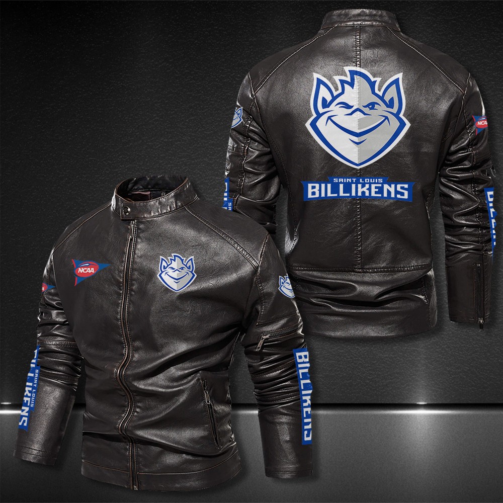 Saint Louis Billikens Motor Collar Leather Jacket For Biker Racer