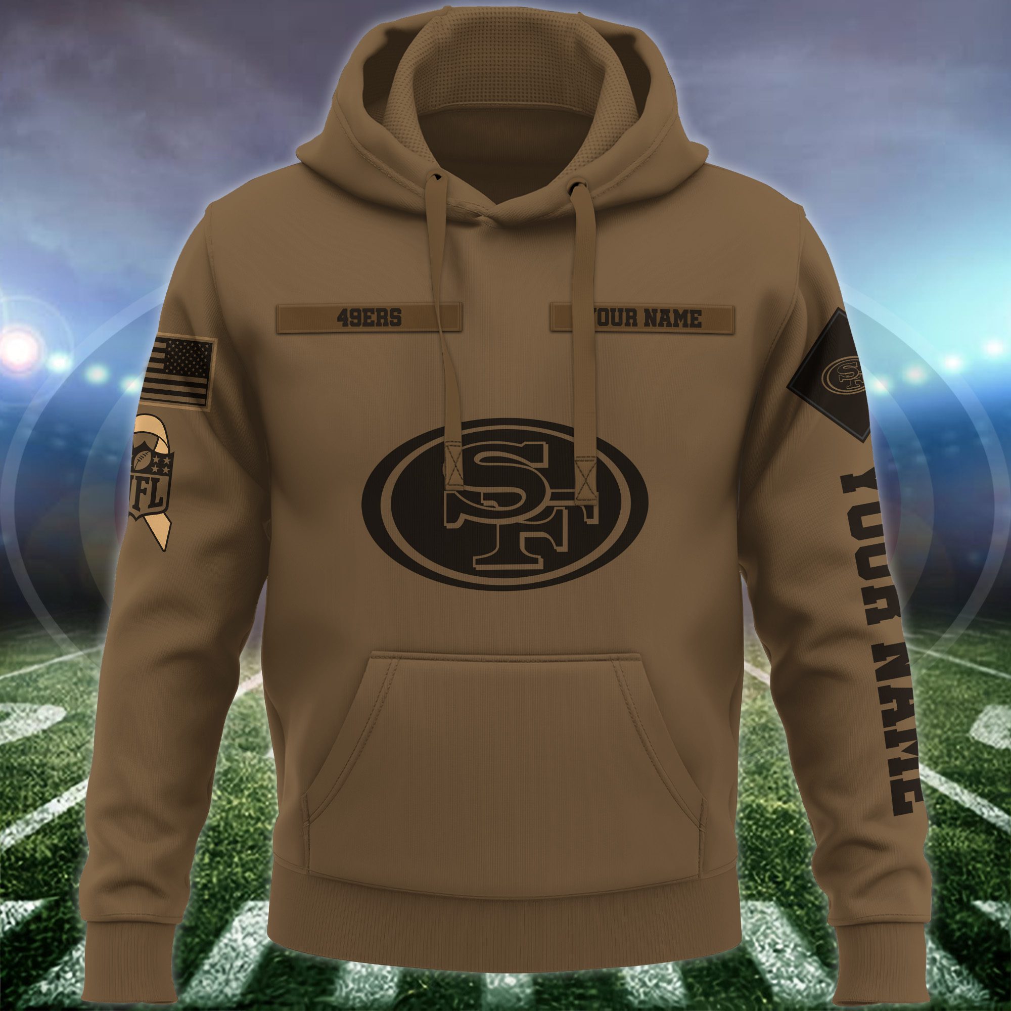 San Francisco 49ers NFL Brown Salute To Service 2023 Veteran 3D Hoodie Custom Your Name HSL1156