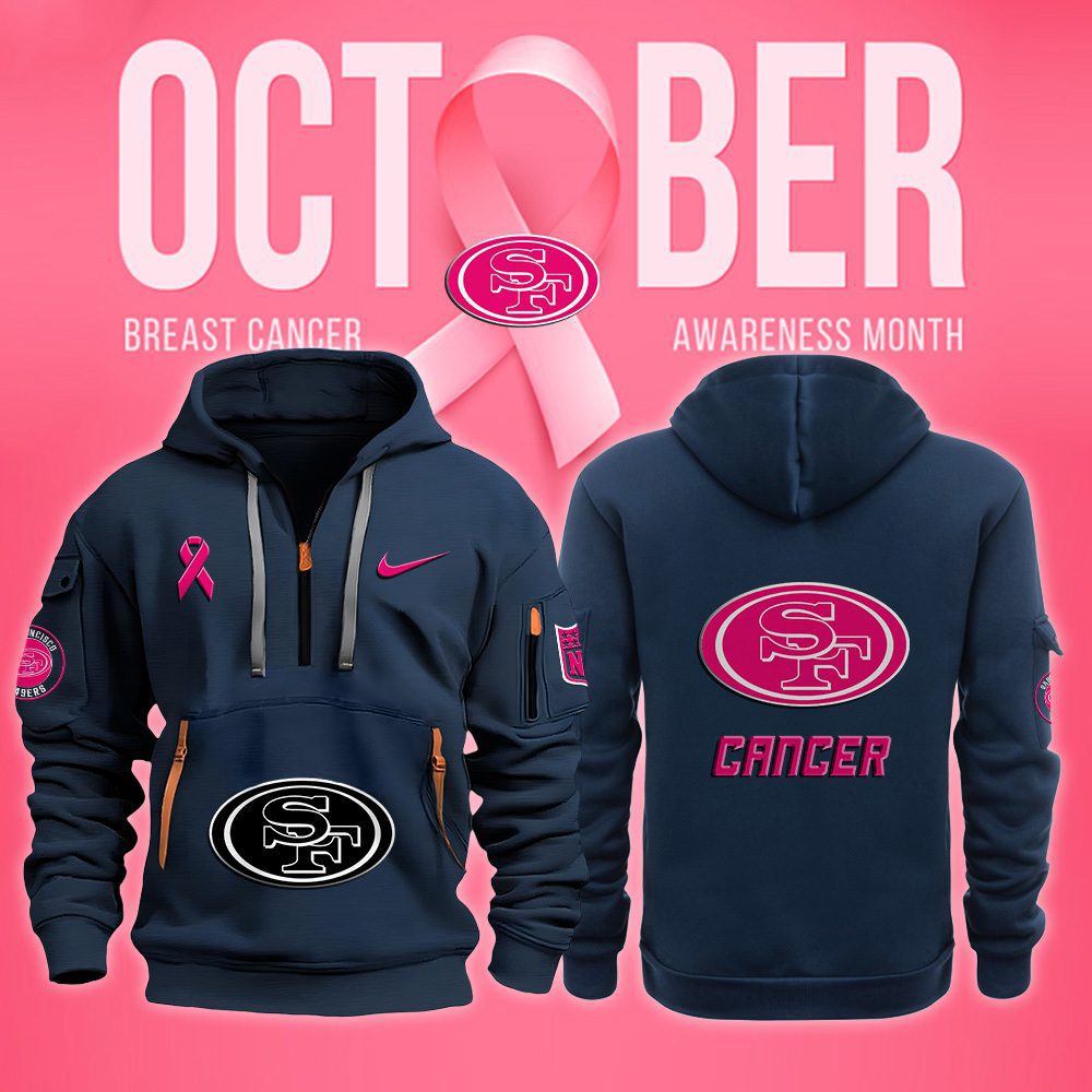 San Francisco 49ers NFL October Breast Cancer Awareness Month Quarter Zip Hoodie