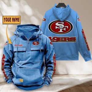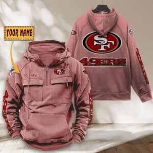 San Francisco 49ers NFL Personalized Multi Pocket Quarter Zip Vintage Hoodie WVH1061