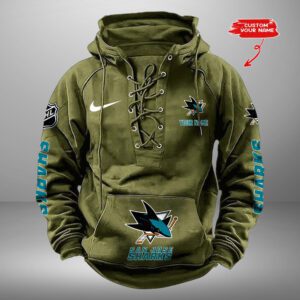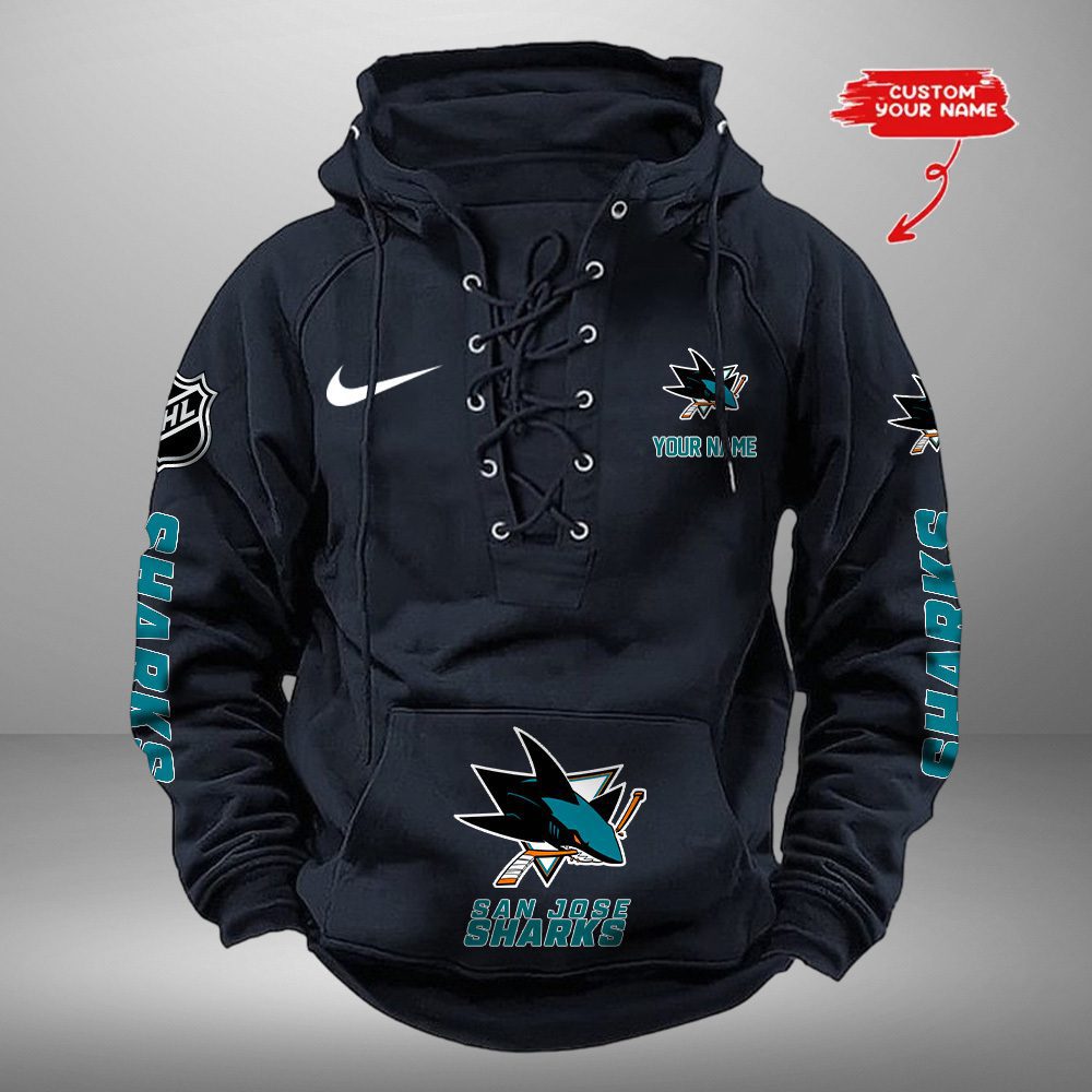 San Jose Sharks NHL Swoosh Hooded Lace Up Retro Vintage Hoodie Custom Name