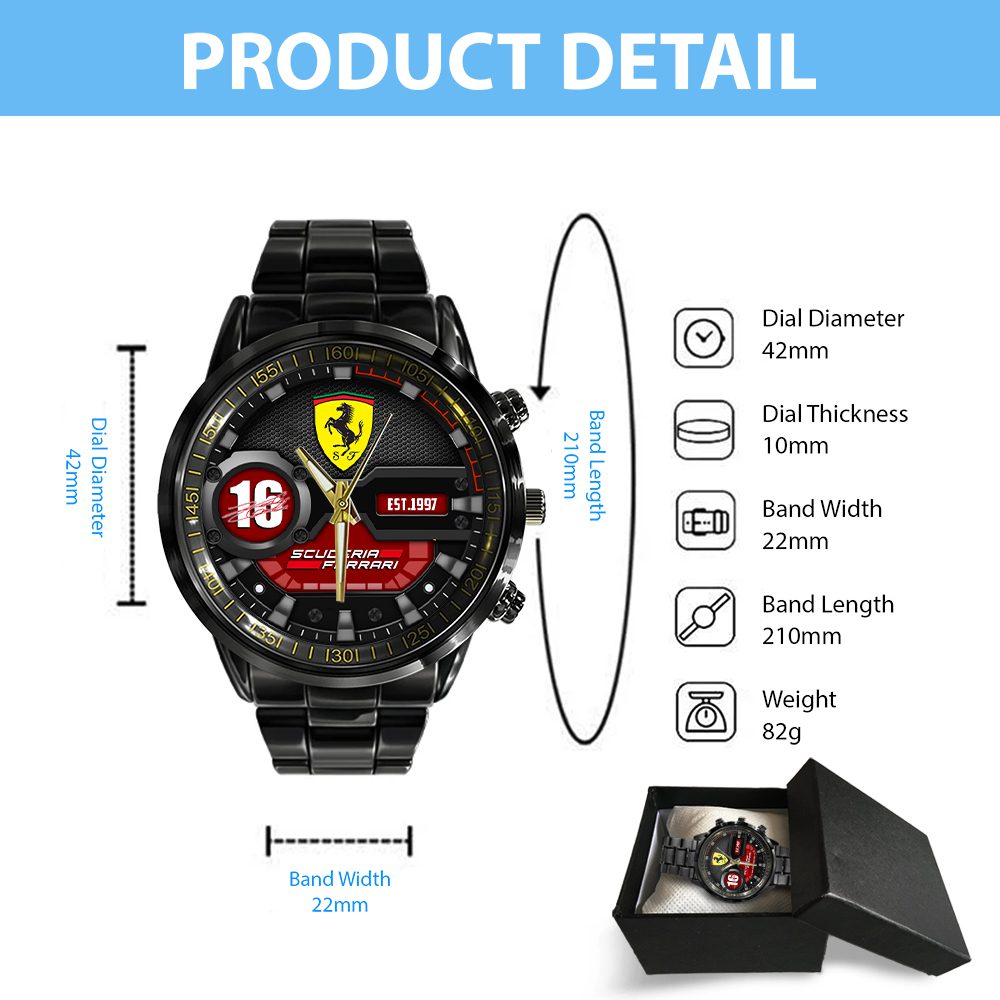 Scuderia Ferrari x Charles Leclerc Black Stainless Steel Watch CGN5037