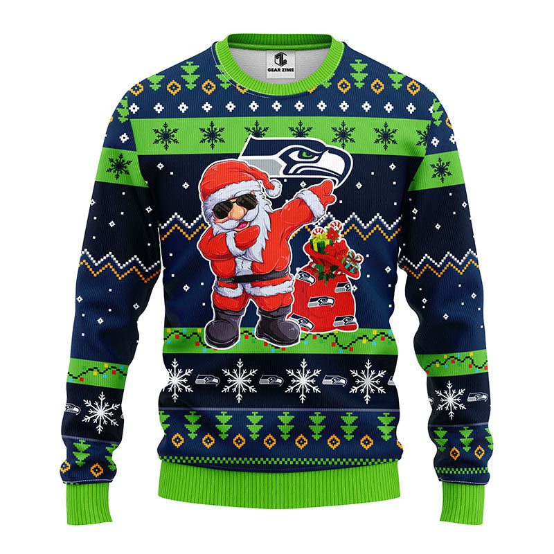 Seattle seahawks NFL Dabbing Santa Claus Ugly Christmas Sweater FUL1115