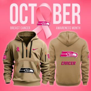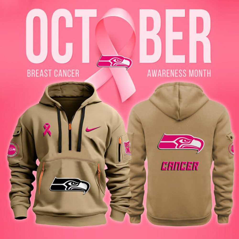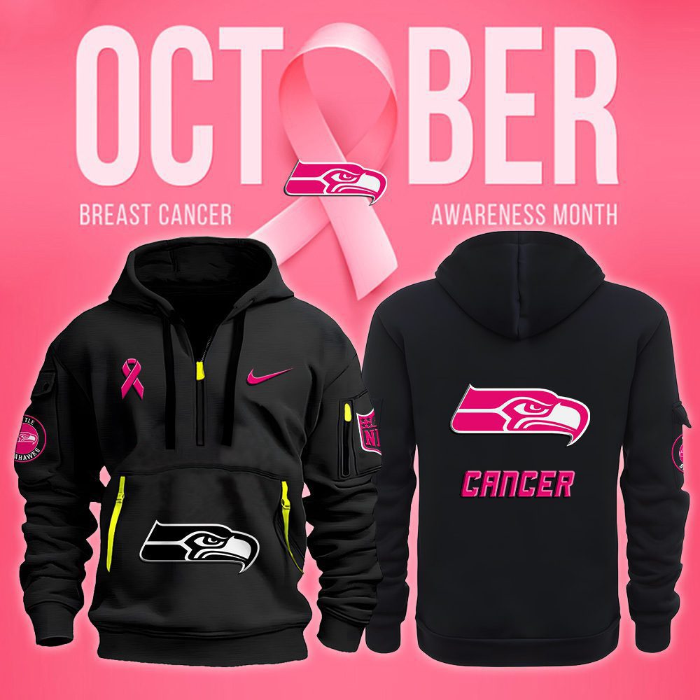 Seattle Seahawks NFL October Breast Cancer Awareness Month Quarter Zip Hoodie