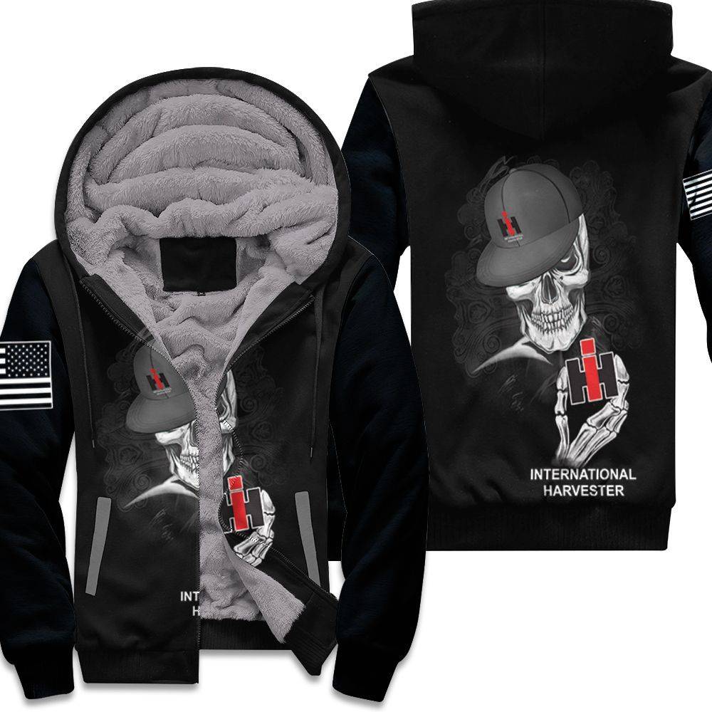 Skeleton Holds International Harvester Logo For Lovers Unisex Fleece Hoodie