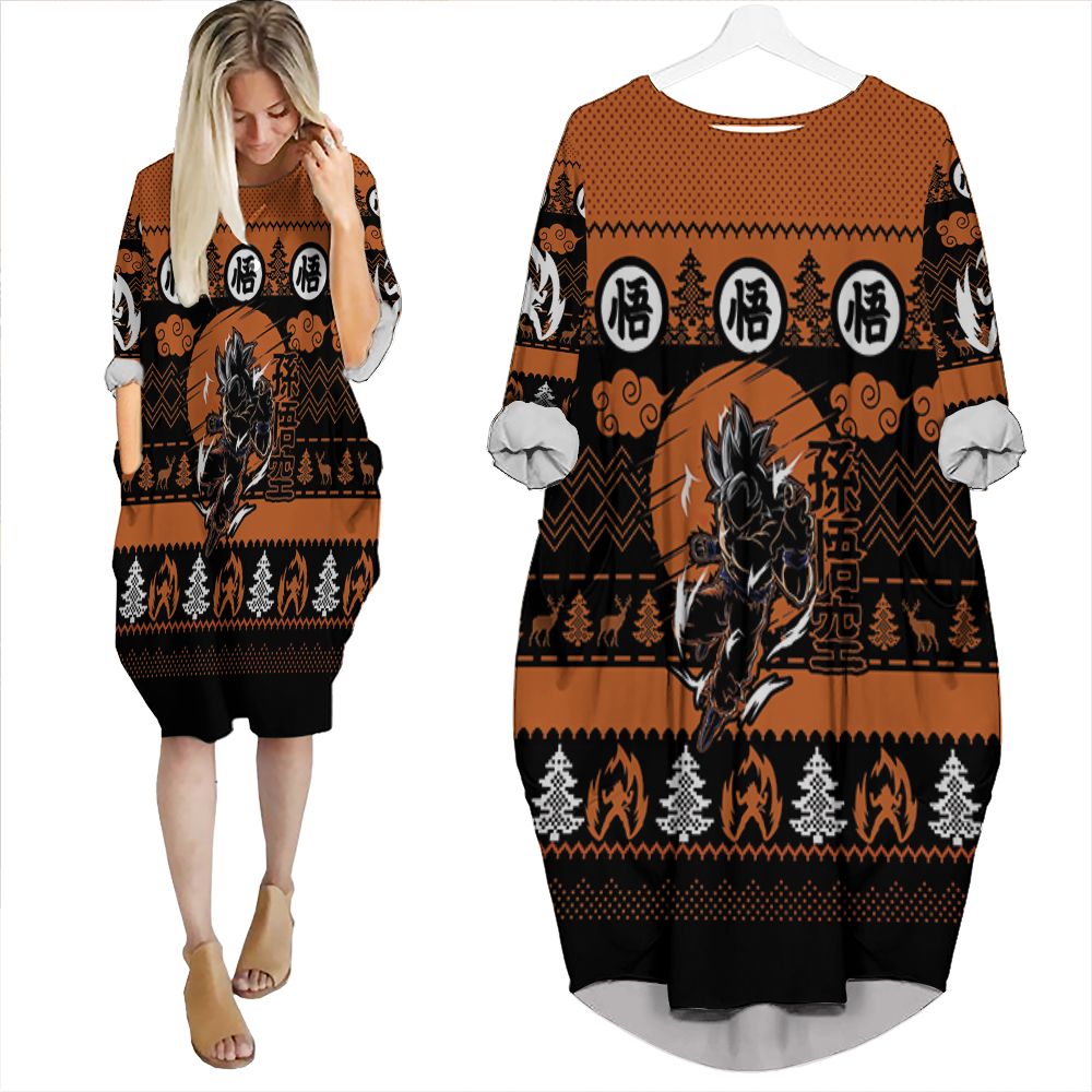 Songoku Super Saiyan Fighting Dragon Ball Christmas Knitting Pattern Batwing Pocket Dress PD2452