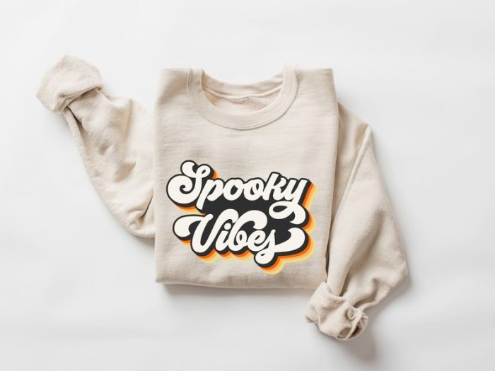 Spooky Vibes Sweatshirt Retro Halloween Sweatshirt Spooky Funny