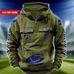 St Louis Blues NHL Hockey Vintage Quarter Zip Hoodie Retro Hoodie Custom Name WRH1026
